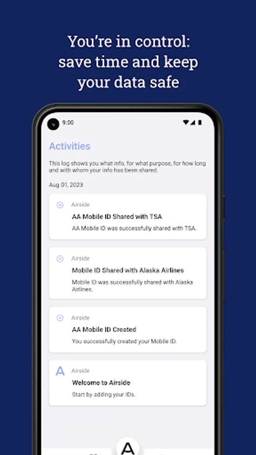2. Select your service. AAdvantage® members can share their mobile ID to enter select TSA PreCheck® security checkpoints and Admirals Club® lounges. Plus, Alaska Airlines is offering a service to share U.S. and Canadian passports prior to an international flight, thereby skipping the line at the airport lobby check-in desk.