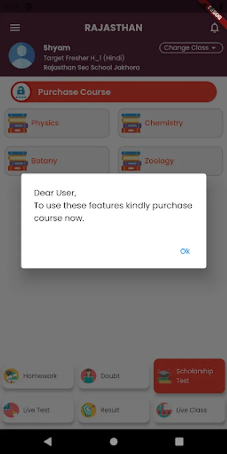Rajasthan School Jakhora Online Education app. The app contains live classes, doubts, exam etc.