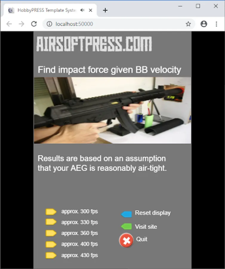 Joule is a standard unit of energy measurement used by the International Standard of Units (SI). One joule represents the amount of energy that is exerted when a force of one newton is applied over a displacement of one meter. This app helps you find the correct joule value given a particular combination of fps and BB weight.