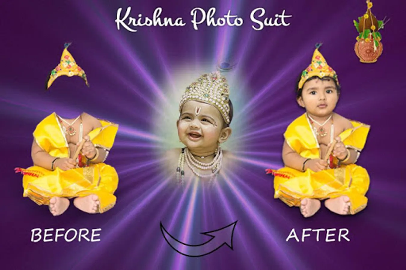 Krishna Photo Suit - Bal Krishna Photo Suit is totally new designed and unique app that makes this Janmashtami more memorable for your family.