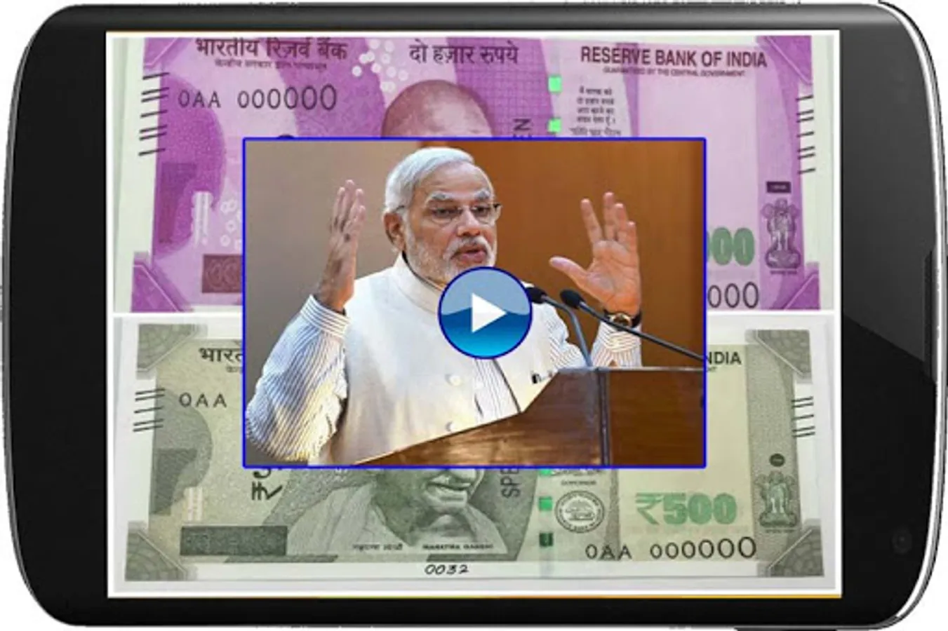Download app and scan your 2000 and 500 new currency note and now you can see our prime minister Narender Modi ji speak on black money and corruption.