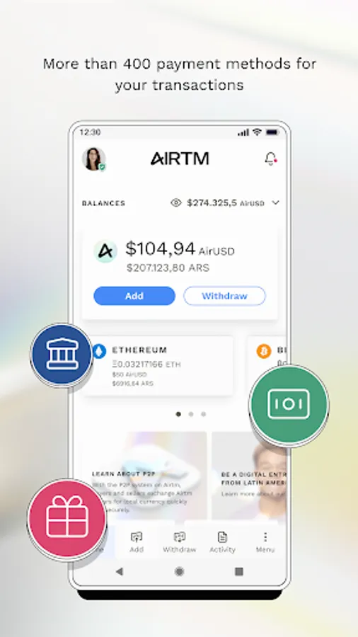 We have over 400 payment methods to add from or withdraw to your account, buy cryptocurrencies and send and receive money wherever you are. All this in a fast, simple and 100% secure way.
