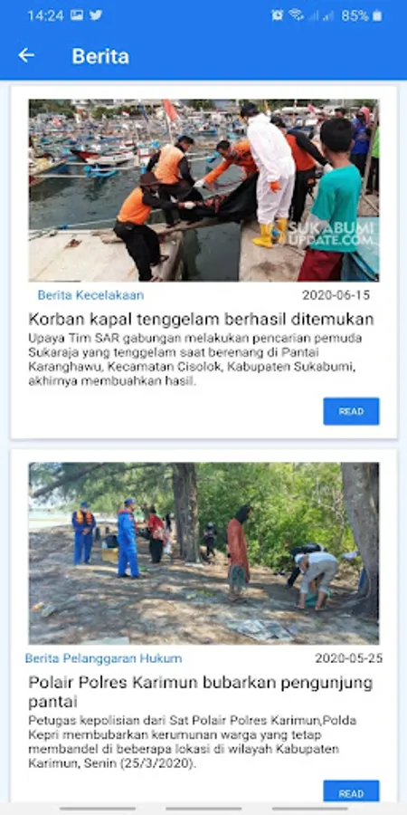 - fitur Berita yang berisikan berita berita mengenai kegiatan Korps Kepolisian Perairan dan Udara