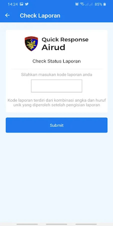 1. Laporan Kriminalitas (untuk melaporkan tidak kejahatan di Wilayah Perairan)