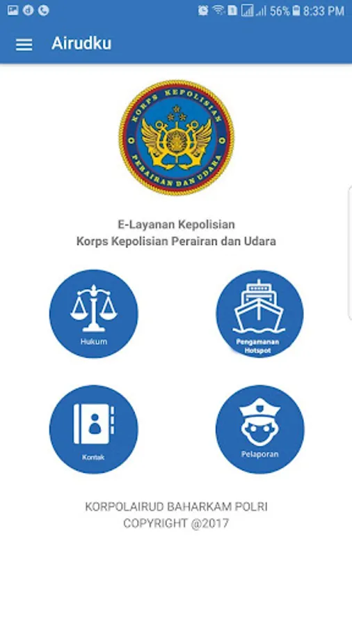Aplikasi Layanan Korps Kepolisian Perairan dan Udara memiliki fitur: