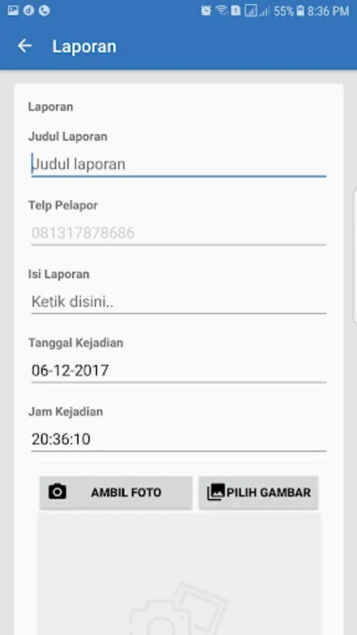- fitur Pelaporan yang didalamnya terdapat 3 fitur antara lain: