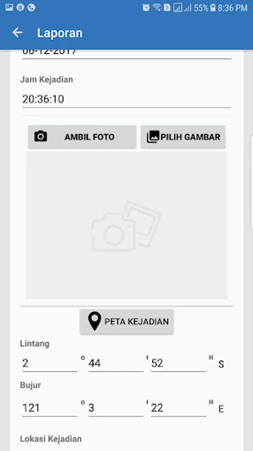 2. Laporan Bencana (untuk melaporkan adanya musibah/kecelakaan di Wilayah Periran) 3. Status (untuk mengecek progress tindak lanjut laporan yang pernah disampaikan)