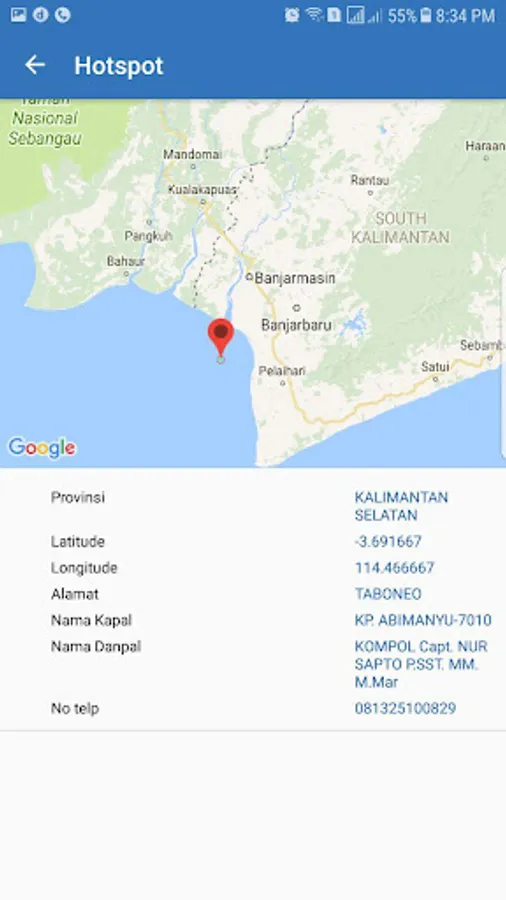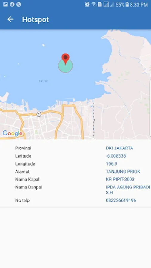 - fitur Kontak yang berisikan alamat lengkap dan nomor telepon Ditpolairud Polda di seluruh wilayah Indonesia;