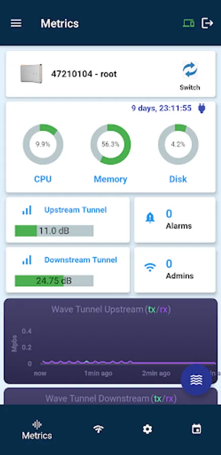 AirvineMobile is a tool that manages Wave Tunnel devices. It allows you to set up, configure, and monitor the WaveTunnel network.