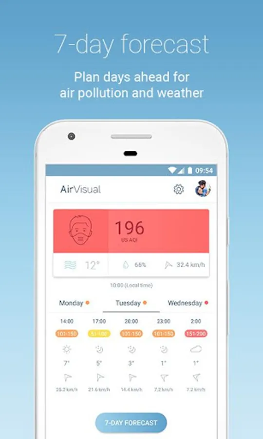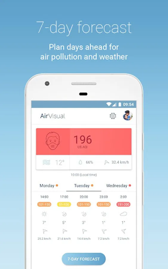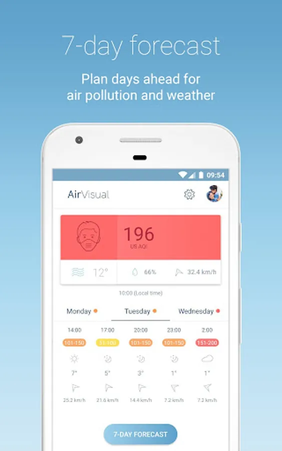 + Leading 7-Day Air Pollution and Weather Forecast: For the first time, plan your outdoor activities for the healthiest experiences a whole week ahead. Wind direction and speed forecasts to understand the wind’s impact on pollution.
