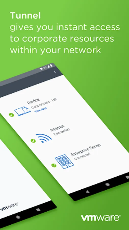 VMware Workspace ONE Tunnel securely connects both internally built and public Google Play applications to corporate resources within your network. Tunnel natively gives your apps on-demand access to what you need to be productive, without touching your personal space.