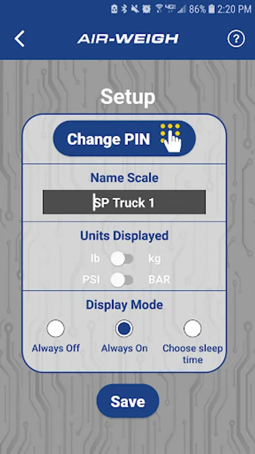 Setup, view axle group weight and calibrate your QuickWeigh Scale all from the Air-Weigh QuickWeigh app! QuickWeigh is your go-to overload protection. A quick check of your weight and you are on your way on time. The QuickWeigh app will walk you through setting up your on-board scale for the first time, calibration options and will become your new best friend for knowing your axle group weight at any loading site.