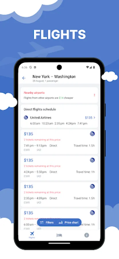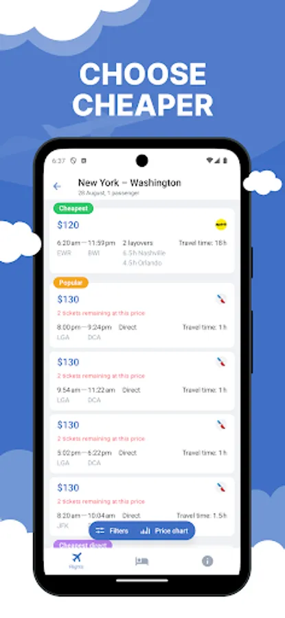 4. Availability. In the app the flight tickets are displayed in real time. Ticket prices are constantly updated, so you are likely to find your cheap airline tickets.