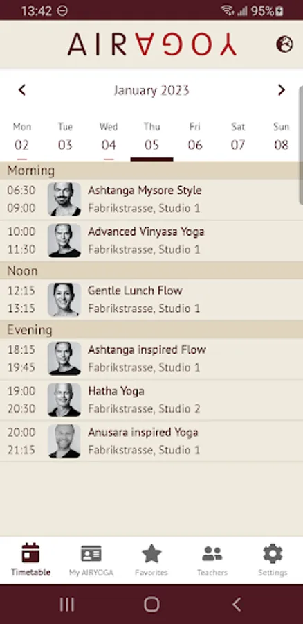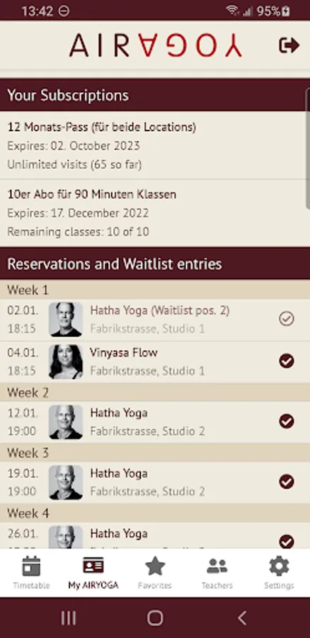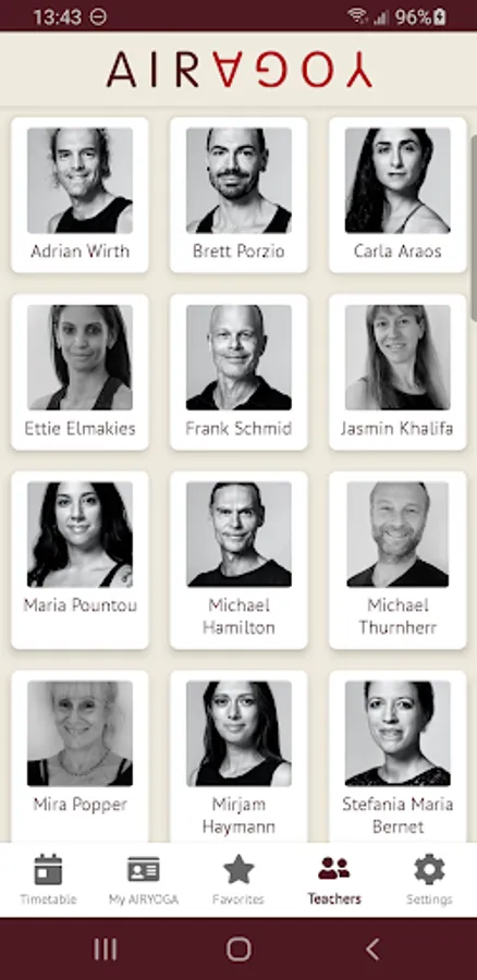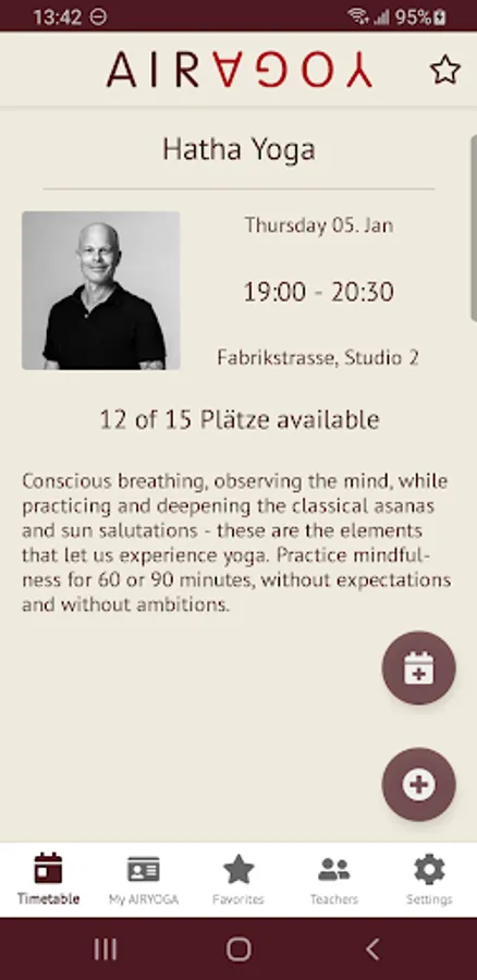 The AIRYOGA App offers the AIRYOGA customers the possibility to access the timetable at any time. The app is linked to the reservation system and offers real-time information on teachers and availability of the class.