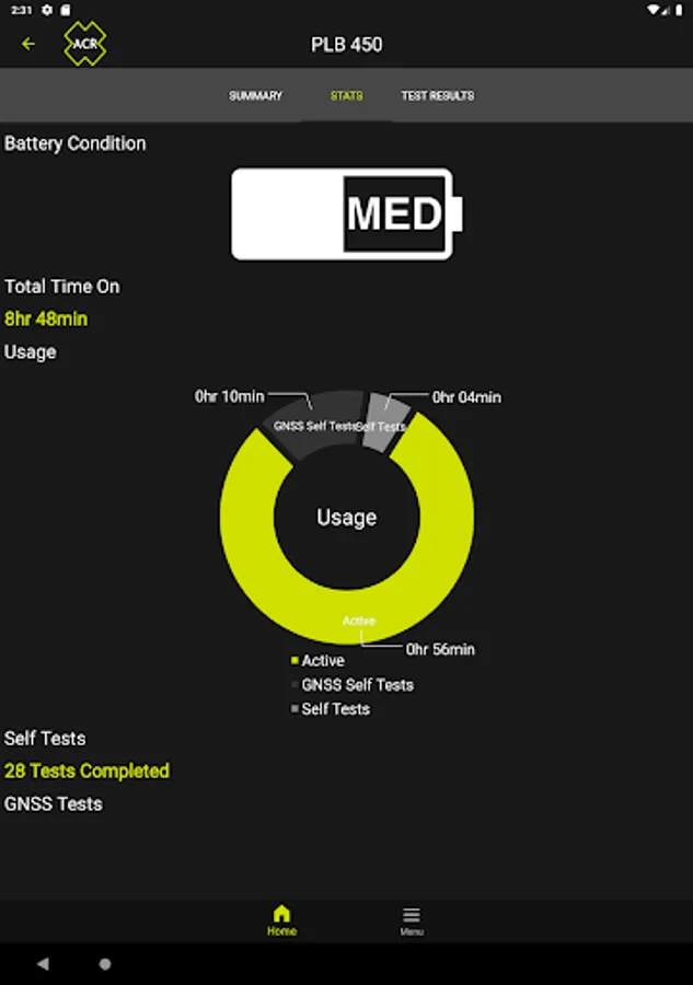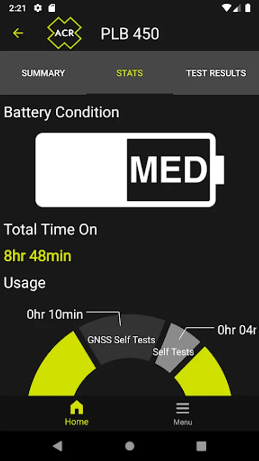 NFC (Near Field Communication) allows access to PLB and EPIRB details where operation time, Battery condition and test results can be easily checked and displayed on a mobile device.