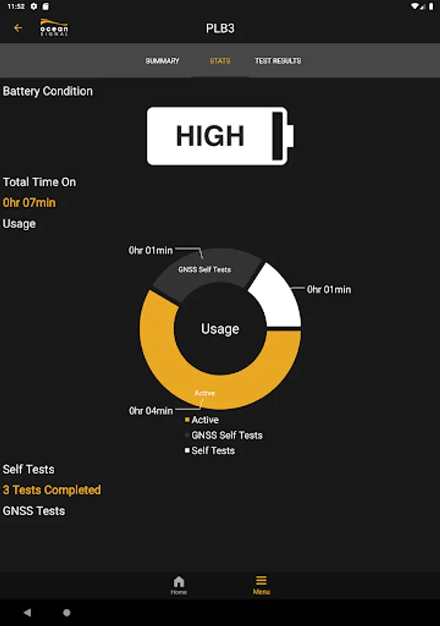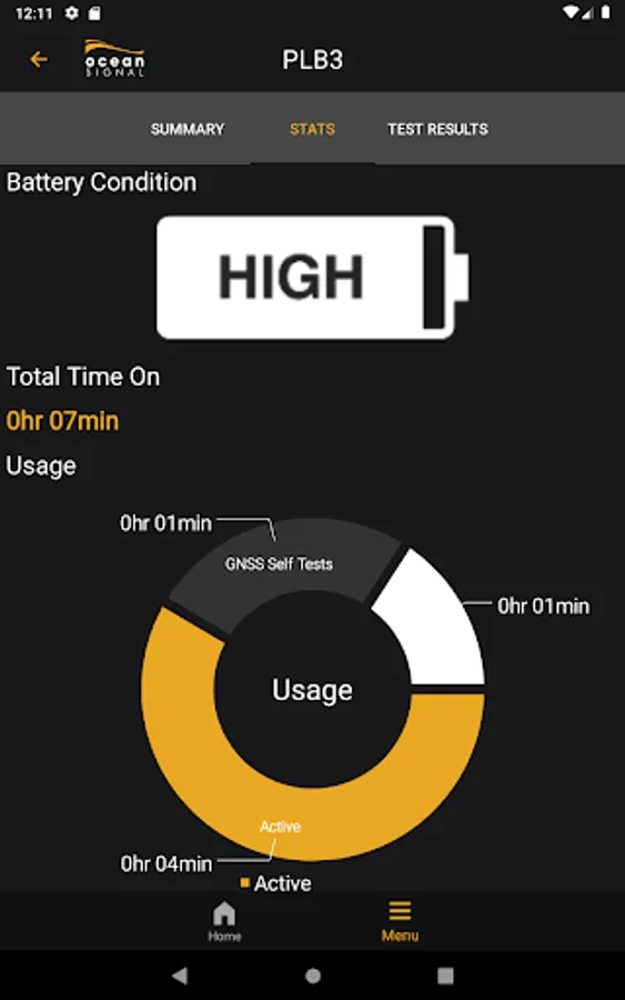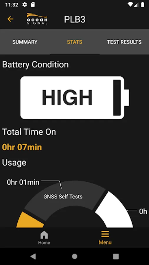 NFC (Near Field Communication) allows access to PLB and EPIRB details where operation time, Battery condition and test results can be easily checked and displayed on a mobile device.