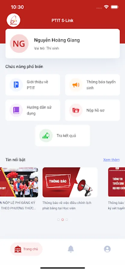 Academy of Posts and Telecommunications Technology is a key human resource research and development unit of the Ministry of Information and Communications. With the goal of promoting digital transformation to improve the quality of training and research, the Academy deploys the PTIT S-Link Admission application for candidates and parents with essential functions throughout the activity. of each actor.