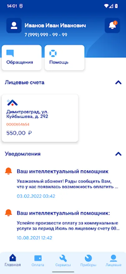 - View information about the invoices for the payment of housing and communal services and make their payment
