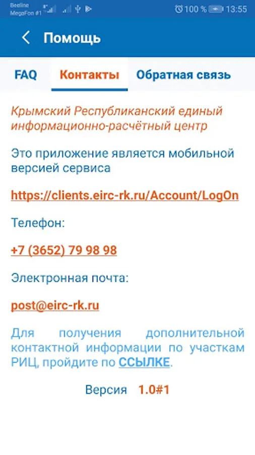 The application allows residents of the Republic of Crimea to access their personal account in the JSC "Single Information and Settlement Center of the Republic of Crimea"