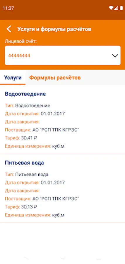 The application allows you to access the personal account of JSC RSP TPK KGRES