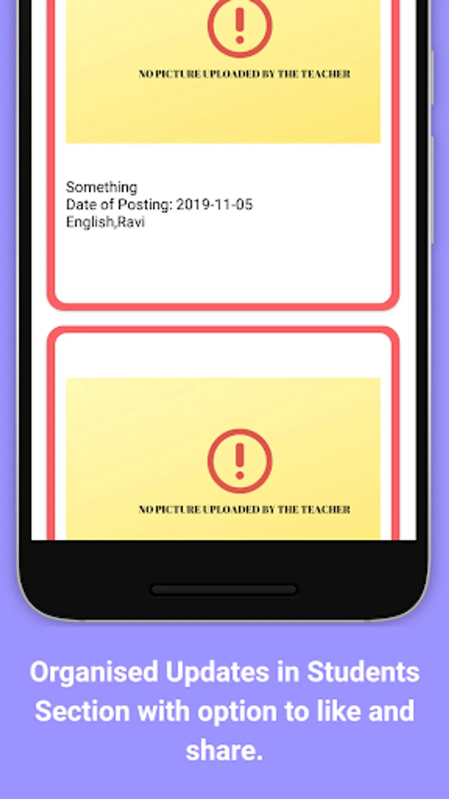• Gallery feature for teachers to upload a photo and for students to download and view