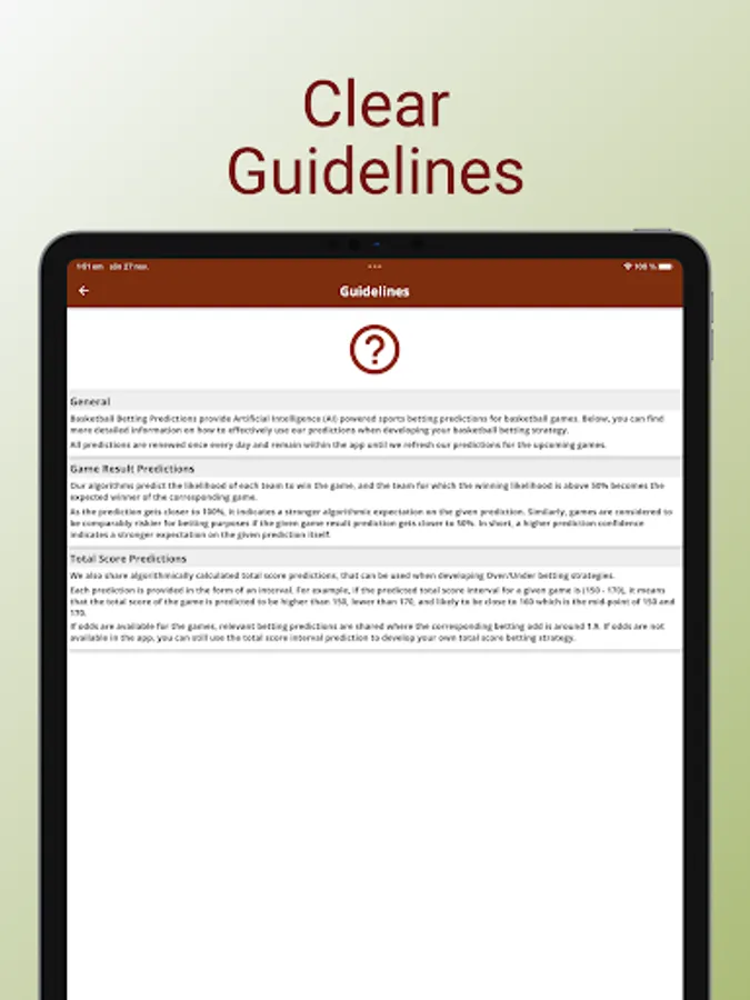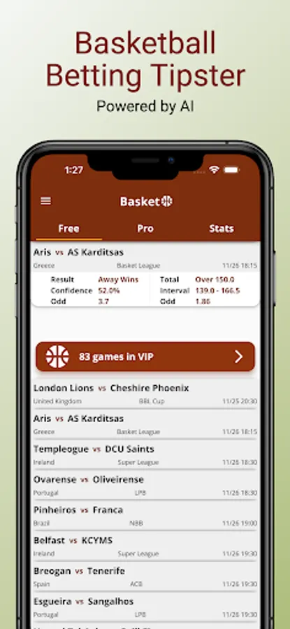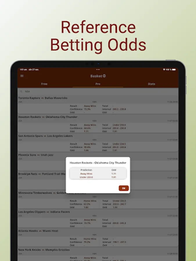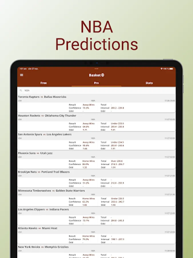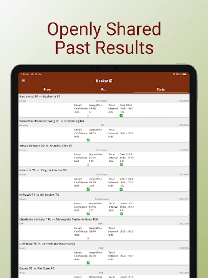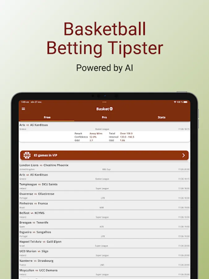 We provide AI powered betting predictions for various basketball tournaments from the globe, including NBA from USA and EuroLeague from Europe. Our algorithms constantly analyze the performance situation of basketball teams and generate predictions for final game results and total score figures for each game. No human interaction is involved in the generation of predictions, and we solely rely on our algorithms. Algorithms work in a way so that predictions are generated consistently, which is not really feasible when predictions are made by humans. Our AI algorithms look at a large number of features when generating predictions and can learn how each feature may affect the result of a basketball game. Predictions are renewed periodically and past prediction results are openly shared in our application. With out app, you don’t need to spend so much time on game and team stats, basketball props, and game highlights. Basketball Betting Tipster automates the performance analysis work for you so that you can focus on thinking how to use the predictions to develop the best basketball betting strategy to beat the bookies. Whenever possible, we even share reference betting odds for each prediction so that you can even consider odds when using the predictions when developing your basketball betting strategy.