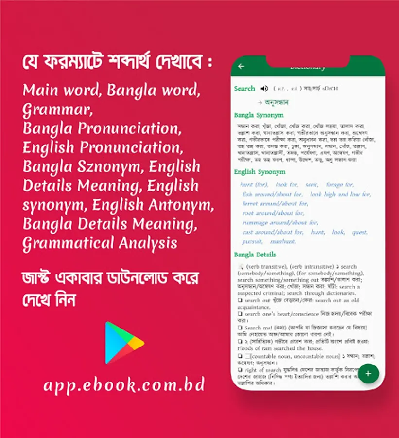 🔊 অডিও সহ বাংলা ও ইংলিশ উচ্চারণ, শব্দার্থ, গ্রামার ফরম্যাট,