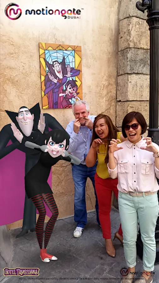 Bring your favorite characters from the world of Hotel Transylvania to life with the Hotel Transylvania Augmented Reality Experience at Motiongate, Dubai! After you’ve downloaded the app, simply aim your phone at the Augmented Reality (AR) markers near and in the Hotel Transylvania attraction at Motiongate. Or, you can print these markers and bring the experience home! When you launch the app, Dracula, his daughter Mavis, Jonathan, and their friends will give you a special behind-the-scenes look at all the monster fun inside the Hotel as they get ready for its first human guest: you! Laugh, dance, interact and even pose for a photo