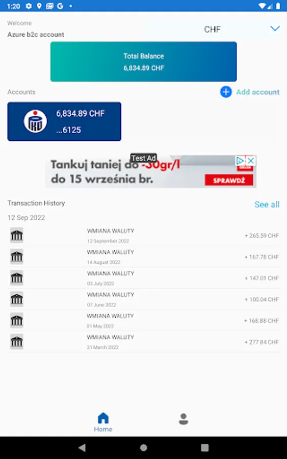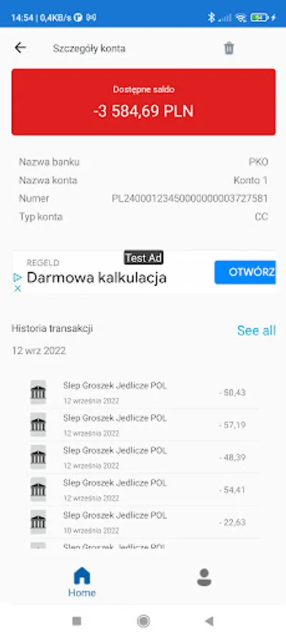 The application allows you to display information about your bank account as part of open banking "PSD2".