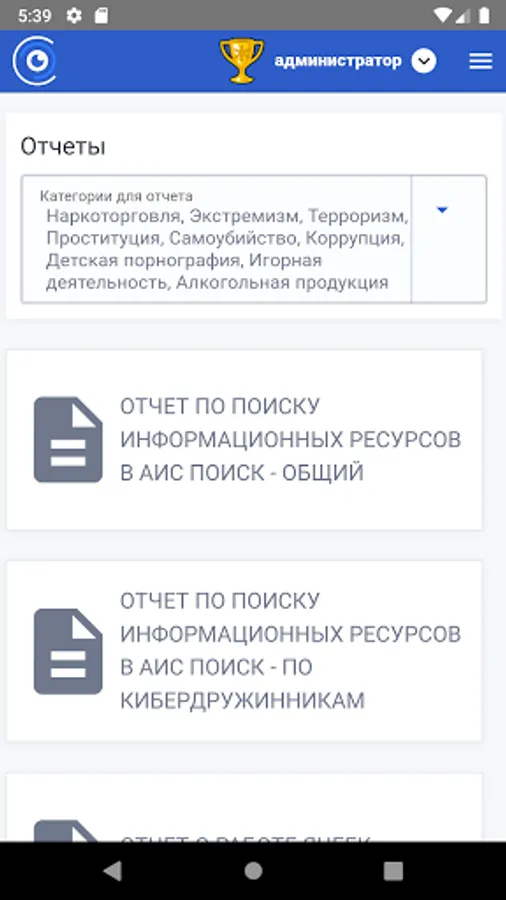 Mobile application for AIS Search. AIS Search is designed to search and block Internet materials containing prohibited information on the territory of the Russian Federation.