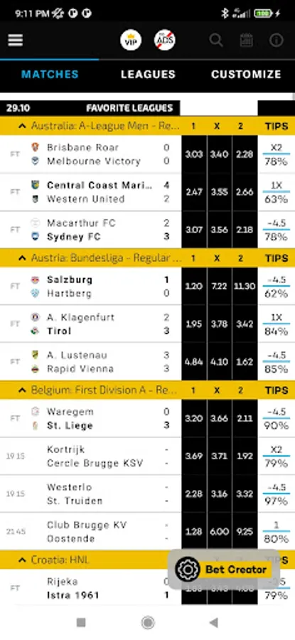 • Full Customization - you can add favorite leagues, expand and collapse leagues visibility and to use the filters to sort matches by leagues or by start hour