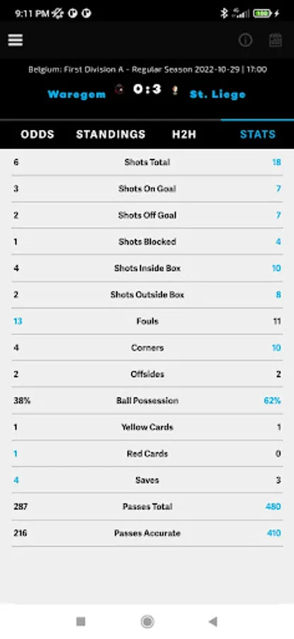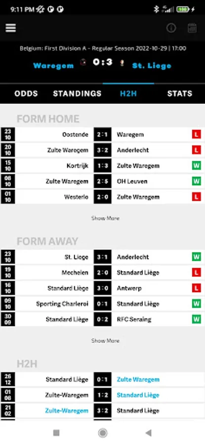• Extra Match Details - Click on a certain match to get extra details like Standings, Team Form, H2H, Post Match Statistics and more