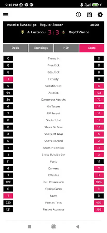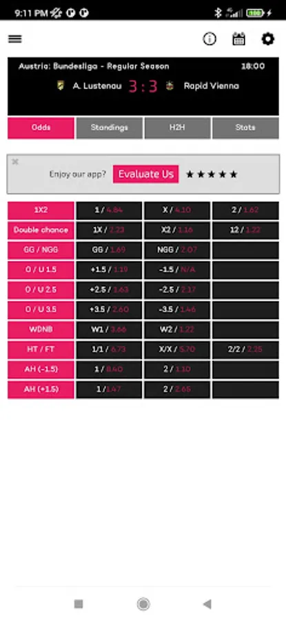 • Extra Match Details - Click on a certain match to get extra details like Standings, Team Form, H2H, Odds for all Markets, Post Match Statistics and more