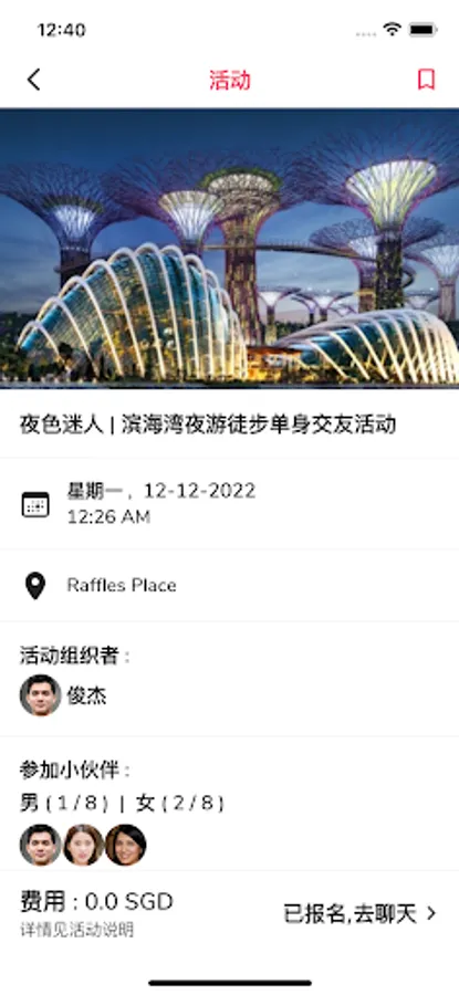This is a Chinese youth community in Singapore. Here you can go on a blind date, make friends, chat! And a variety of offline activities are waiting for you to participate in!