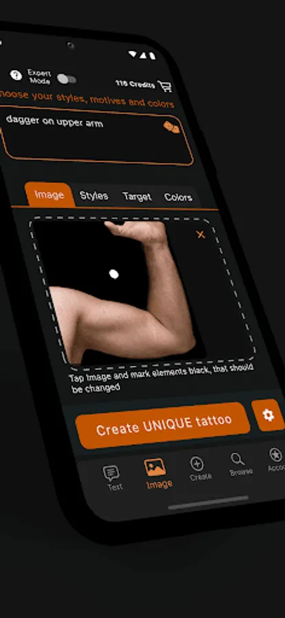 With our app, you are guaranteed to find the right tattoo for your next ink session. Become an artist yourself and design your tattoo according to your ideas.