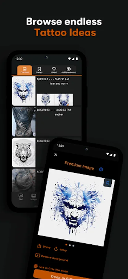 Looking for the right design for your next tattoo? With AI Tattoos you become a tattoo artist yourself. Each tattoo design is absolutely unique and there are no limits to your creativity. Everything, really everything is possible. Download our app and get your personal tattoo created.