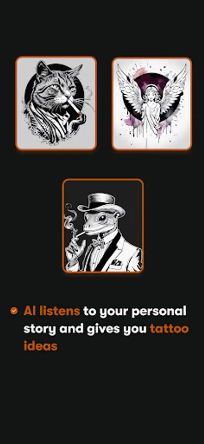 Don't forget to tell your friends about AI Tattoos and share your tattoo results with the world on social media with the hashtag #AI-Tattoos. You may wonder what the "AI" in our name stands for. It means artificial intelligence and is responsible for creating the tattoos in our app. We are proud to be the first app that allows you to create generated tattoos that are entirely made by ai. Welcome to Tattoo 2.0