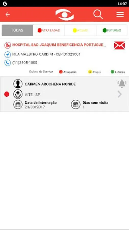 Possibility to inform the operator of the existence of hospitalized patients from whom they have not yet been regulated.