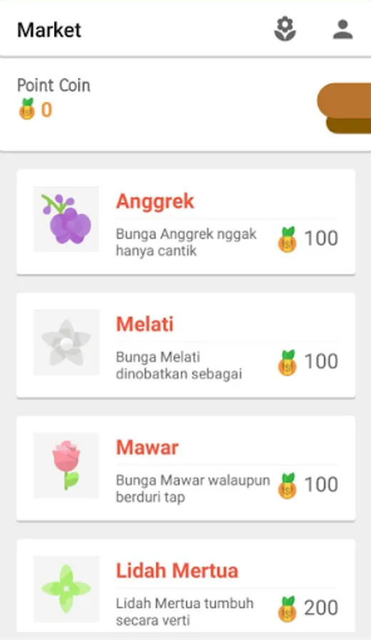 4. Fitur Market adalah fitur yang memungkinkan anda membeli tanaman digital dengan cara mengumpulkan point plant terlebih dahulu.