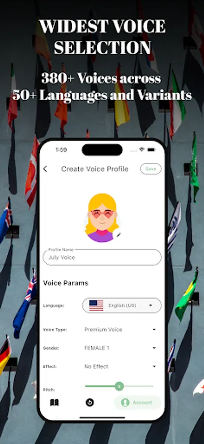 Create and customize as many Voice Profiles as your want for your various purposes: voice for book reader, voice for faceless Youtube or Tiktok video creator, voice for reading news, voice for reading kids stories,…