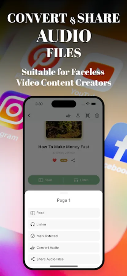 * Physical Book Scanner to scan your paper books, then convert them to audio and enjoy listening.