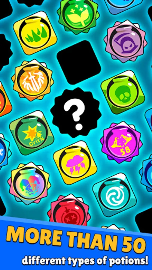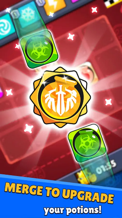 Merge the same type of potion with the same number, your potion will be raised 1 level. But remember! The potion type changes randomly when you merge them!