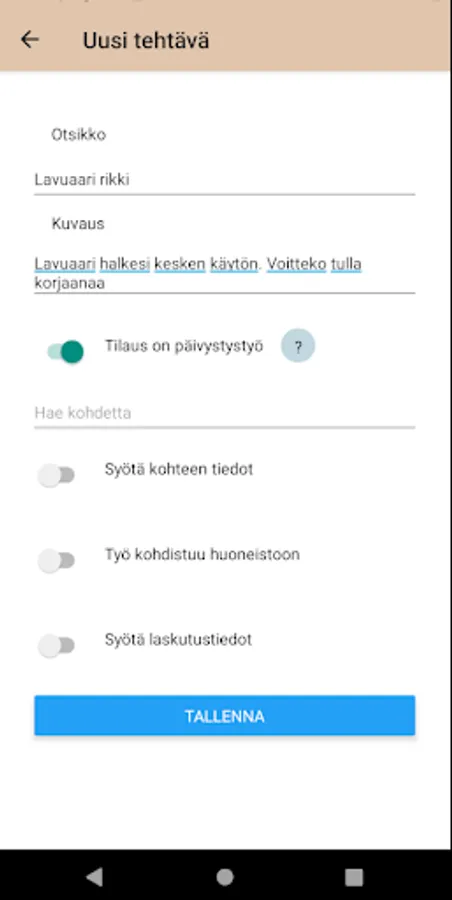 With the help of the standard pipe, you can conveniently order DHW work from the standard pipe. You can get up-to-date information on the progress of the work through the application. The app also lets you check past tasks on your destination.