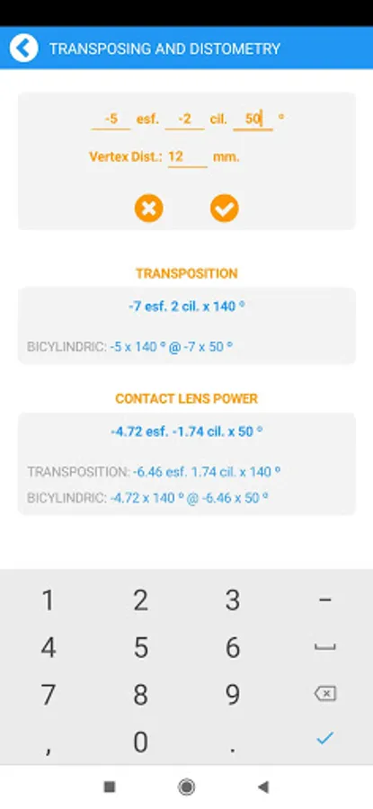 Calculator to facilitate the work of an Optician or Optometrist.