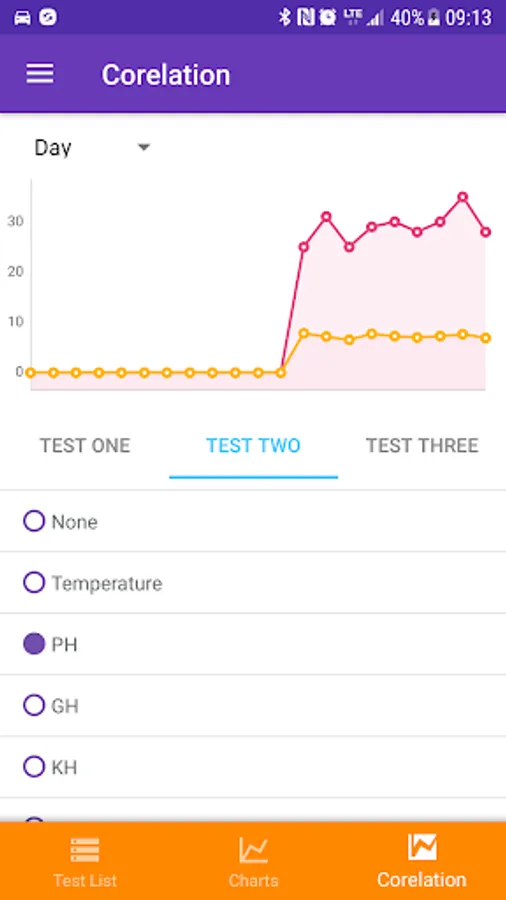 Corelation allows you to graph three freely selected parameters in daily, monthly and weekly time periods.