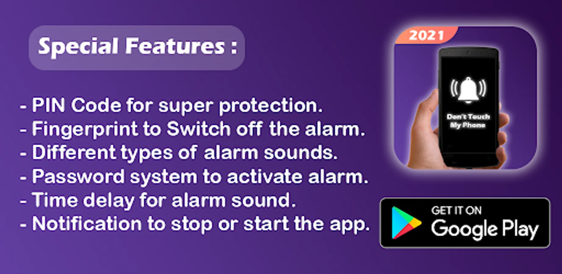 - Anti Theft Alarm phone security.