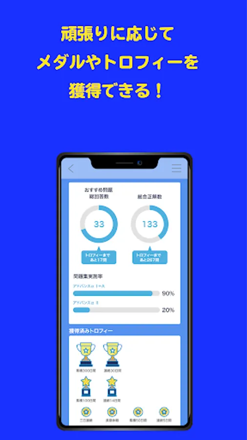 You can earn trophies in the app according to your efforts such as the number of study days.