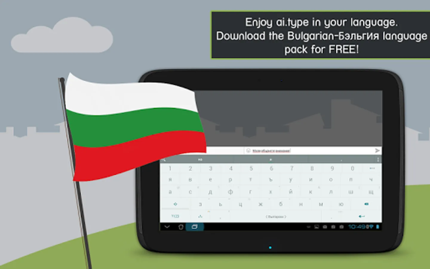 Download this FREE Bulgarian dictionary pack to use it with your ai.type.com Keyboard. You’ll be able to type much faster with our world leading next word prediction, completion and correction self learning technology. The ai.type Keyboard makes a perfect tool that learns your typing patterns then predicts and corrects your typing- as you type. Try it out now for FREE!