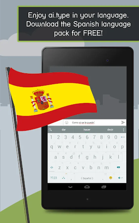 Download this FREE Spanish dictionary pack to use it with your ai.type.com Keyboard. You’ll be able to type much faster with our world leading next word prediction, completion and correction self learning technology. The ai.type Keyboard makes a perfect tool that learns your typing patterns then predicts and corrects your typing- as you type. Try it out now for FREE!