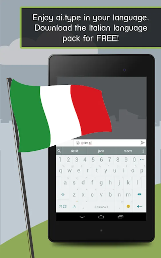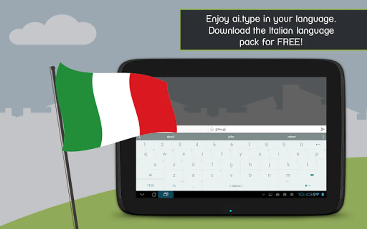 Download this FREE Italian dictionary pack to use it with your ai.type.com Keyboard. You’ll be able to type much faster with our world leading next word prediction, completion and correction self learning technology. The ai.type Keyboard makes a perfect tool that learns your typing patterns then predicts and corrects your typing- as you type. Try it out now for FREE!